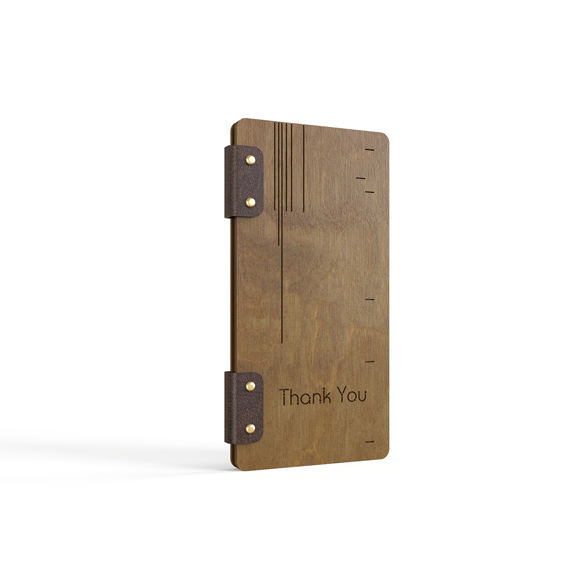 Wooden Bill & Receipt Holder in various colors with exterior screws, leather in the back, in dimension (10cm x 20cm) and with laser logo engraving