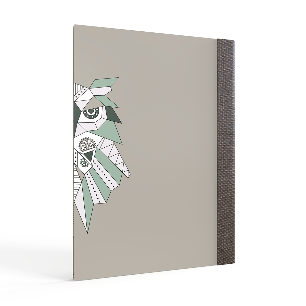Menu Holder covered with digital printing and leather on the back, in dimension A4 (22cm X 32cm) from the new series of menu holders 2022. Menu Holder binding is with hidden screws.