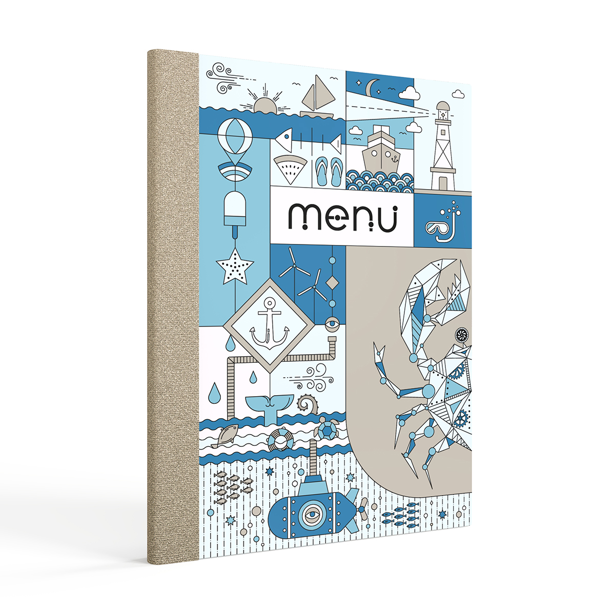 Menu Holder covered with digital printing and leather on the back, in dimension A4 (22cm X 32cm)