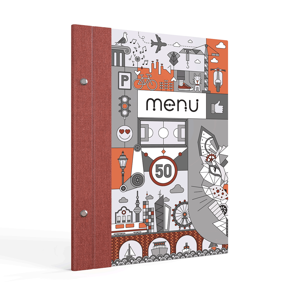 Κατάλογος επενδυμένος με ψηφιακή εκτύπωση και δερματίνη στην ράχη, σε διάσταση Α4 (22cm Χ 32cm) από την νέα σειρά καταλόγων 2022. Το δέσιμο του καταλόγου είναι με εξωτερικές βίδες.